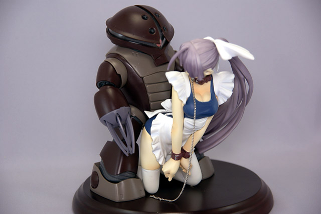 これは、クレイズ萌え〜ろ祭り2006で販売され、作例も展示されていた、橋本タカシ氏がすく水ペッタンで描かれた「スク水+エプロン+首輪イラスト」を立体化したガレキをコールドキャスト完成品にしたものです。