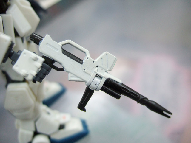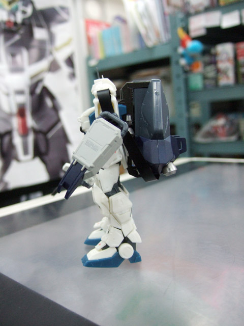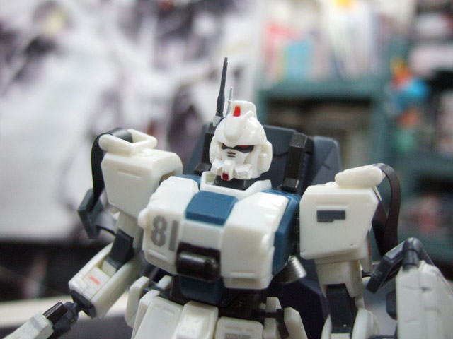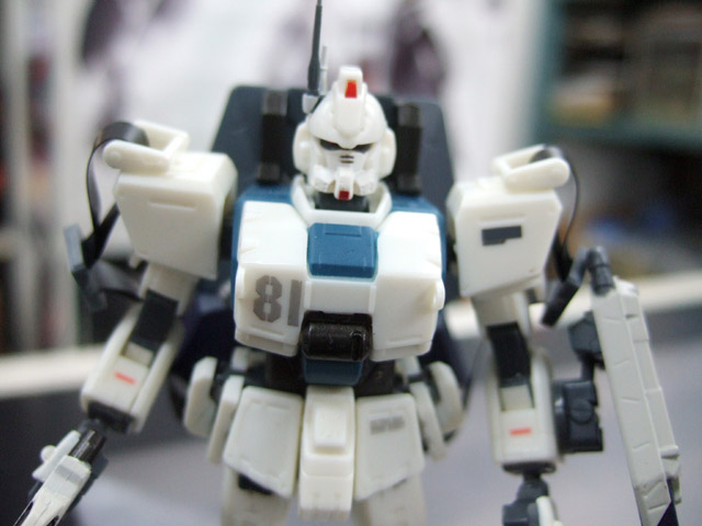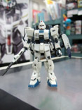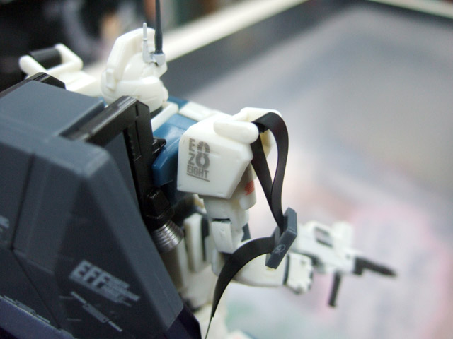 Ez8は、Wikipediaによると「アプサラスIIとの交戦により大破した極東方面軍コジマ大隊第08MS小隊所属のシロー・アマダ少尉の搭乗する陸戦型ガンダムに大規模な改修を施したものである。そもそも陸戦型ガンダム自体が品質検査に適合しなかった余剰パーツで建造された機体であったため、戦線での補修用パーツの供給は十分でなく、改修には陸戦型ジムのパーツや現地調達の各種ジャンクパーツ等が利用された。本機はそのような現地改修機の一つであり、その際、破損部の補修だけでなく、陸戦型ガンダムの運用により浮上した問題点をフィードバックし固定武装の変更も行われている。なお、Ez8は「Extra-Zero-8」(08小隊特別機)の略である。〜携行武装は陸戦型ガンダムの改修機ということもあり、同機の兵装はすべて使用可能であった。」という機体。