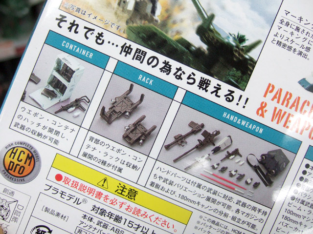 初回生産分同梱特典として銃火器4種(100ミリマシンガン・180mmキャノン・バズーカ・ビームライフル)付属。