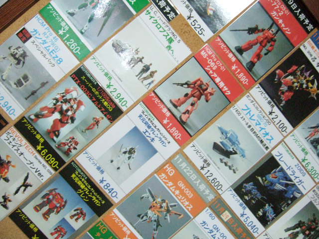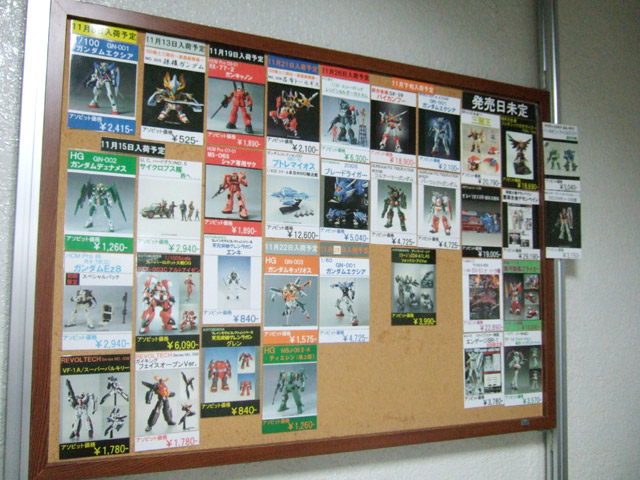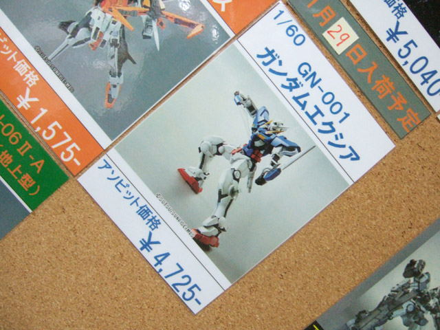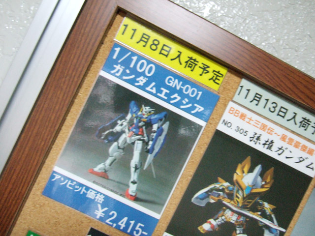 キャラシティのガンダムもの+α入荷予定掲示板が、11月のものに更新されていました。それによると、バンダイ「1/60 ガンダムエクシア」(AA)は29日ころ入荷みたいです。他、「1/100 ガンダムエクシア」(AA)、「HCM-Pro46-00 ガンダムEz8」(AA)、「HG ガンダムキュリオス」(AA)、コトブキヤ「スパロボOG アルトアイゼン」(AA)等、掲示されていた入荷予定日をまとめました!