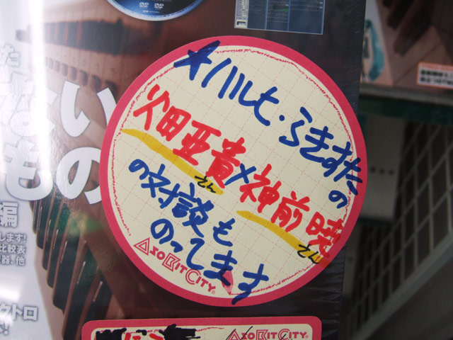 6日には販売してたらしい、「DTM MAGAZINE 2007年 12月号」が7日にはゲームシティにも入荷してました。今月号では、初音ミクに続く、VOCALOID2第2弾となる、アイマスの「とかち」双海亜美・真美役で知られる下田麻美さんが声を担当された「鏡音リン」のイラストなどが公開されていて、ゲームシティのPOPでは「ミクじゃない!!だれだあれは!?」。他、7日のよろずネタを。