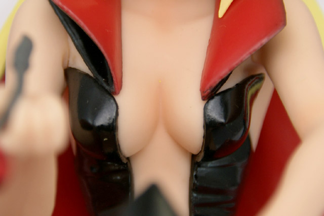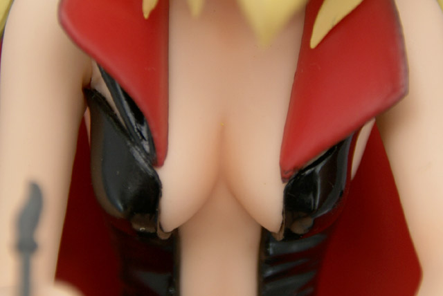 胸元も大きく開いていて、まるでライダースーツのようなエロチックな乳の谷間となっています。
