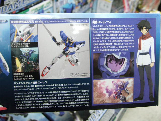 バンダイ「1/100 ガンダムエクシア」(AA)のパッケ表と側面の解説など。