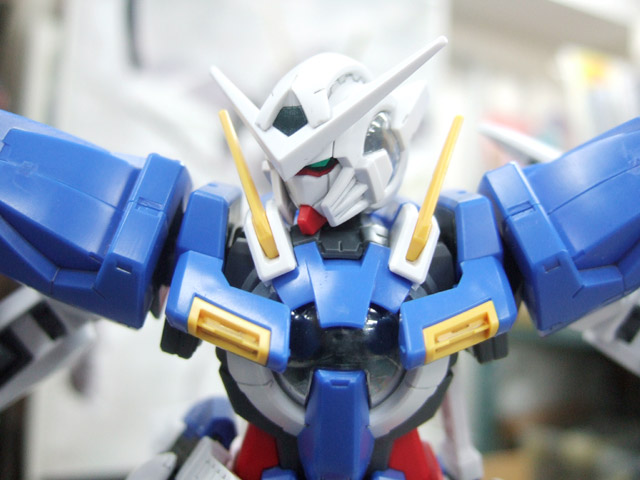 ガンダムエクシアは、公式の紹介によると「ソレスタルビーイングの所有するガンダムの一機。機体中央に搭載されたGNドライヴから発生するGN粒子により、無限に近いエネルギーと、驚異的な機動性能を実現している。また、空間に放出されたGN粒子は、電波障害を引き起こし、通信、及び通常レーダーの使用を不可能にする。ビーム兵器を携帯可能にするなど、現用MSに比べ飛躍的に高い技術が数多く導入されている。頭頂高:18.3m、本体重量:57.2t」という機体。