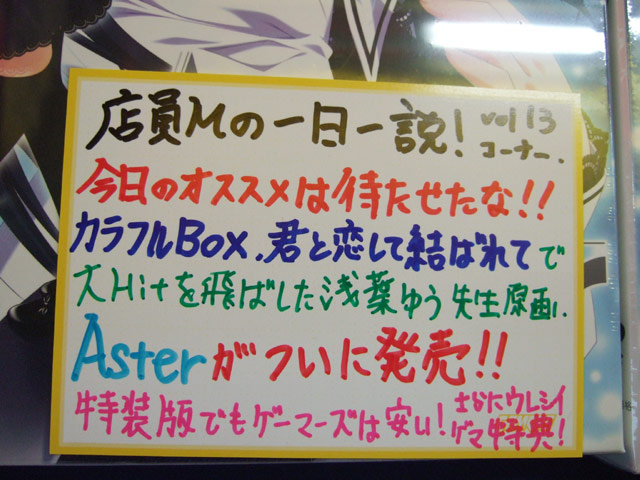 ゲーマーズ本店では、RusKのエロゲ「Aster」(AA)を店頭で販売していました。