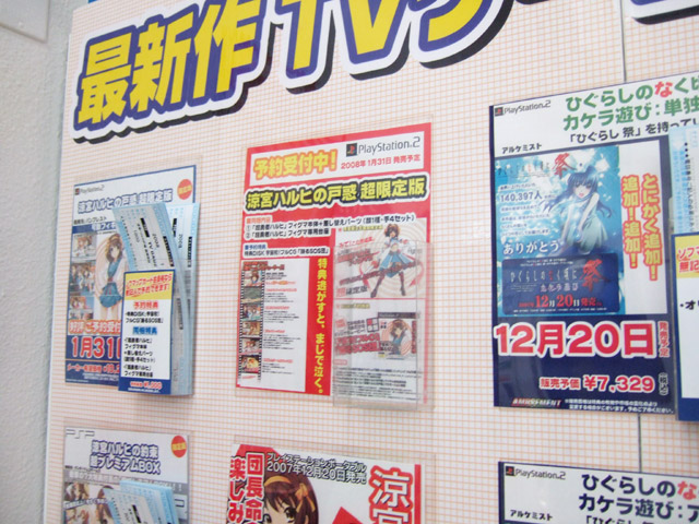 「涼宮ハルヒの戸惑 超限定版」(AA)は、ゲームシティでは予約一時停止中になっていますが、ソフマップアミューズメント館、キャラシティ等では予約受付続行中でした。