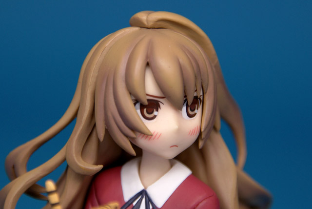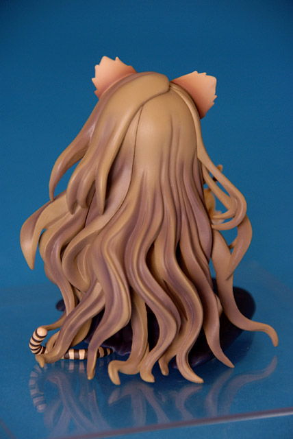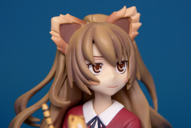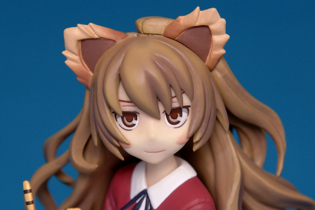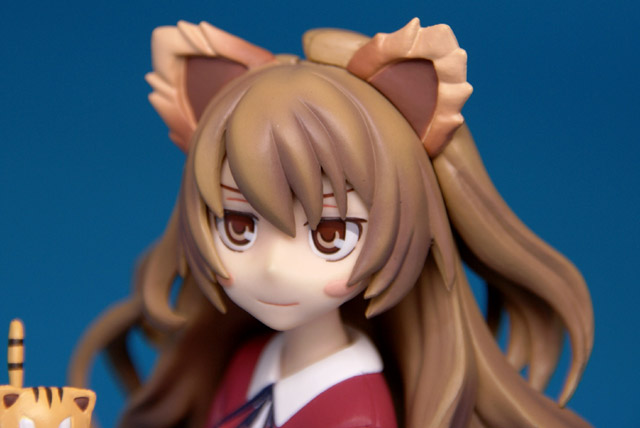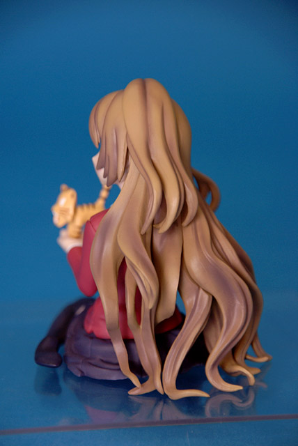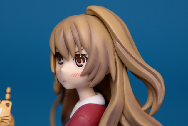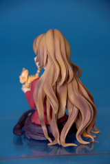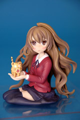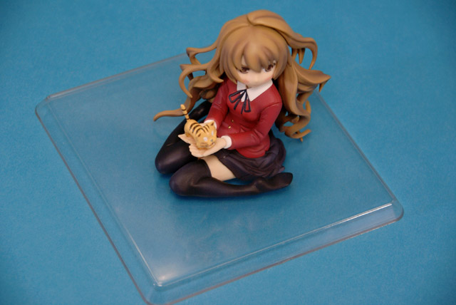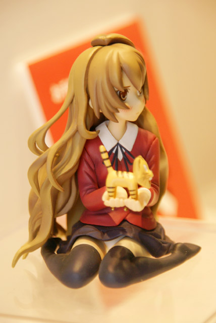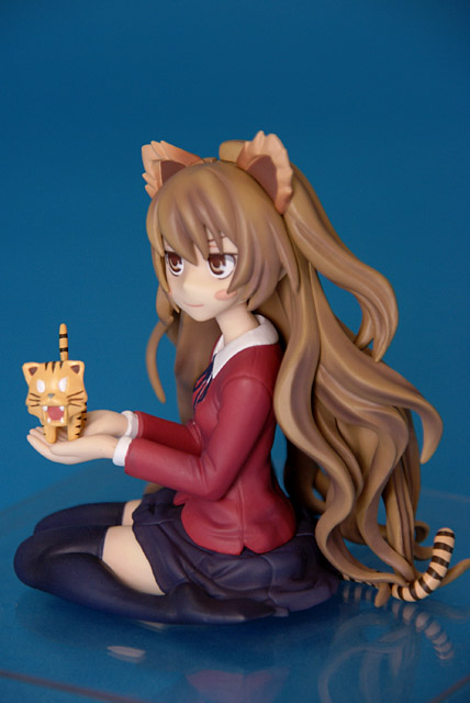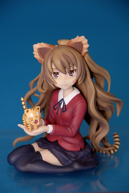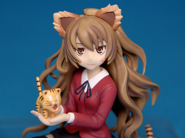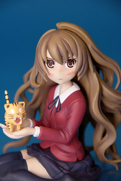 これは、2007プララジショーでもサンプル展示のあった、小説「とらドラ!」のキャラ「逢坂大河」を、1巻表紙(AA)をモチーフにしたポーズで立体化したもので、ウェーブの商品説明によると「電撃文庫の大人気作品「とらドラ!」からヒロインの“手乗りタイガー”こと逢坂大河がPVC完成品で登場です。その狂暴、獰猛な性格とは裏腹の小さくて人形のように可憐な姿を人気原型師サイトウヒール氏が見事に表現。ポーズは印象的な第一巻表紙イラストをモチーフにしており、大河の手に収まっている「手乗りタイガー」も付属しています。また、パーツを差し替えることで一巻の巻末イラストをモチーフにしたトラ耳、しっぽをつけて不敵な笑みを浮かべる「トラ耳Ver.(?)」に変更可能。 文字で書かれたキャラクターの魅力を立体物へ見事に再現した、原作ファンから目の肥えたホビーファンまでも満足させる一品です。」と紹介されています。