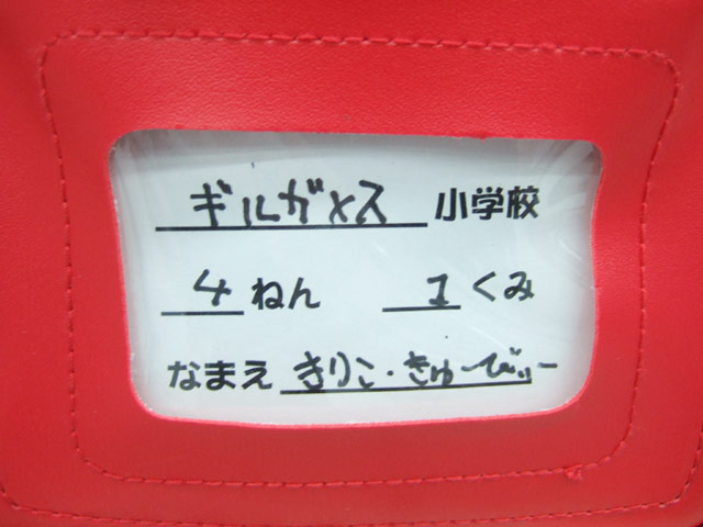 名札はもちろん「ギルガメス小学校 4ねん 1くみ なまえ きりこ・きゅーびー」。