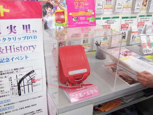 ゲームシティで展示されている、DVD「こどものじかん 1科目」(AA)の初回版に付属予定の「全巻収納式ランドセル型DVD-BOX」のふたが開いているのに気がつきました。