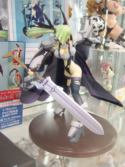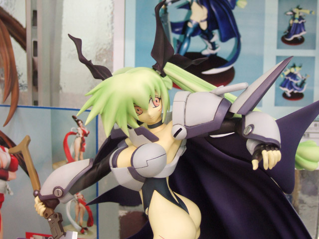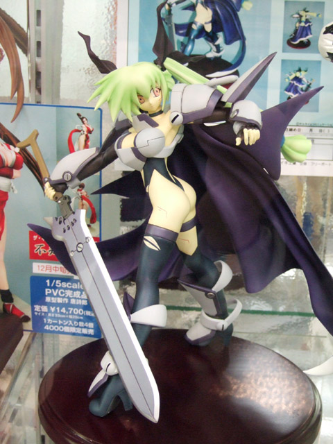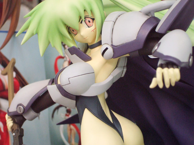 これは、「18禁ではないからこそ表現出来るドキドキがある!」と書かれていて、実際ギリギリ?なコミック雑誌「隔月刊コミックヴァルキリー」に連載中の「インフィニティブレード」のキャラ「ルル(ルシアス=ルーセント)」を立体化したもので、一緒に展示されていたPOPによると「コミック ヴァルキリー(キルタイムコミュニケーション社刊)から、大人気コミック「インフィニティブレード」の魔法戦士ルルを立体化!!ルル(ルシアス=ルーセント)は、かわいい顔に反し、冷血なせ威嚇の戦士です。そんなルルの、迫力のあるバトルポーズをご堪能ください。」と紹介されています。