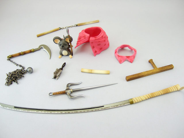 この武器類は1/6サイズ位なので、27cmドールなどの小道具として等で、色々なものに使いまわせて面白いんじゃないかなとw
