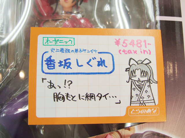 13日に入荷確認できたのは、ソフマップアミューズメント館のほか、コトブキヤラジオ会館、キャラシティ、ソフマップ秋葉原PCゲーム・アニメ館、「あっ!?胸もとに編タイ・・・」というPOPのあった、とらのあな本店等でした。
