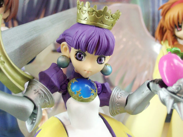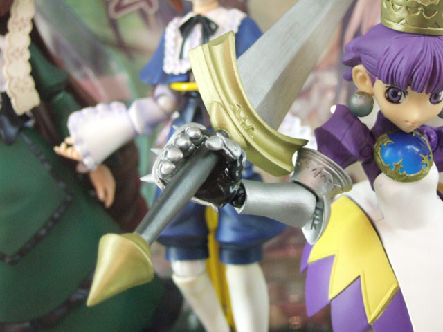 これは、宮沢模型展示会2007年春でもサンプル展示のあった、1997年にセガサターン用ソフトとして発売し、2007年にPSP版も発売されたゲーム「プリンセスクラウン」の主人公キャラ「グラドリエル」を可動フィギュアにした、Yujinの新シリーズ「SRDXD」の第一弾となるもので、Amazonの商品説明によると『ユージン可動シリーズSRDXD第一弾は、「プリンセスクラウン」の気高くもかわいい女王『グラドリエル』。可動場所は全部で20箇所以上。「光の王冠」と「王家の剣」などの装備も付属しており、飾り栄えする仕様となっている。』と紹介されています。