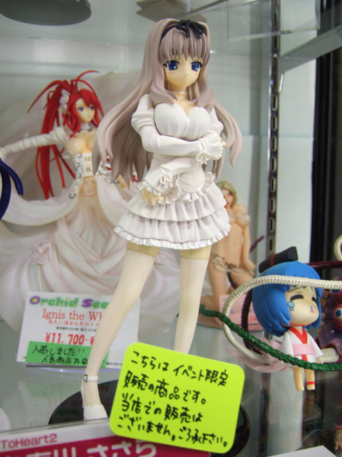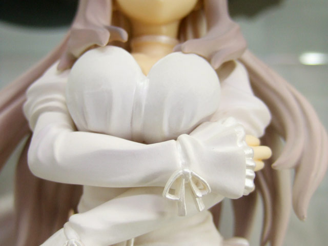 これは、以前サンプルをお伝えしたこともある、「ToHeart2」のキャラ「久寿川ささら」をゴスロリ風の私服姿で立体化した「通常版」(AM)を、白を貴重としたカラーにし、12月2日に開催予定の「アクアプラスフェスタ2007」会場限定で販売されるもので、レジーニャ!の商品説明によると「ToHeart2久寿川ささらフィギュアにイベントでしか買えない一部カラー違いの限定版が発売決定!白ドレス、白ニーソ、そして黒い下着のささりゃんだ!2007年12月2日開催のアクアプラスフェスタ2007にて、500体の限定販売いたします。白く清楚なささら会長を是非、イベント会場でゲットして下さいね!!」と紹介されています。