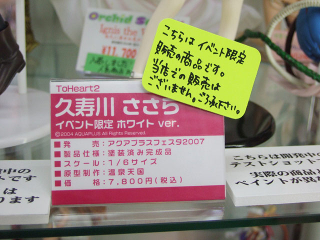 なお、コトブキヤラジオ会館で展示はされていますが、POPに「当店での販売はございません。」と書かれているように、あくまで展示してあるだけで、購入できるのは12月2日に開催予定の「アクアプラスフェスタ2007」会場のみとなるみたいなので、お間違いなく〜。