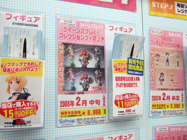 ソフマップアミューズメント館では他にも、メディコス・エンタテインメント「超像 クイーンズブレイド コレクション 第1弾」(AA)の予約受付が開始していました。