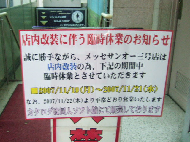 メッセサンオー3号店が店内改装スルみたいで、「店内改装に伴う臨時休業のお知らせ」が出ていました。