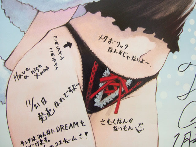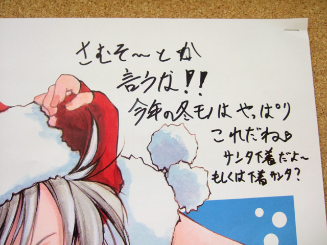 イラストはにしき義統氏の描かれた「スカートはいてない」女の子サンタで、ポスターに書かれた解説(?)によると「さむそ〜とか言うな!! 今年の冬モノはやっぱこれだね♥ サンタ下着だよ〜 もしくは下着サンタ?」とのこと。