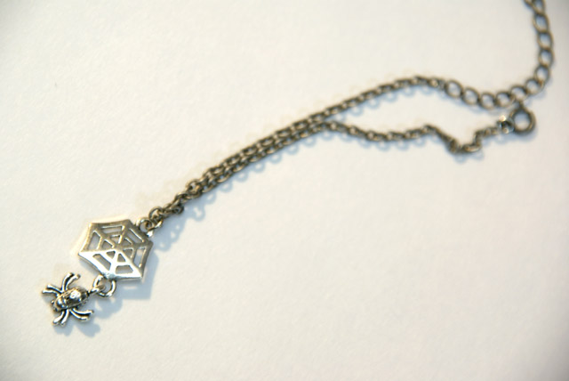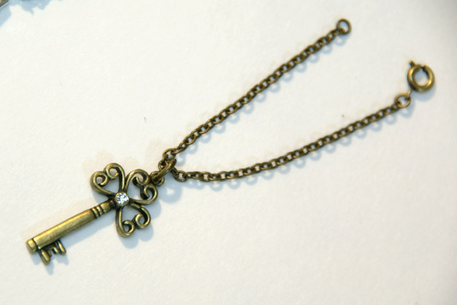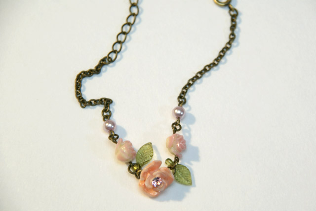 左から「野薔薇の首飾り」「蜘蛛の首飾り」「鍵の首飾り」。