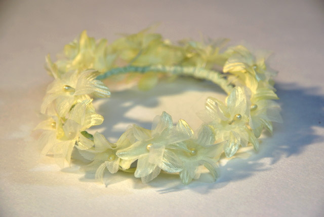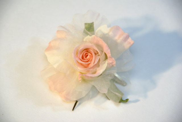左から「野薔薇の髪飾り(大)」「白い花の髪飾り(3ピース)」「野薔薇の髪飾り(3ピース)」「野苺の髪飾り」。
