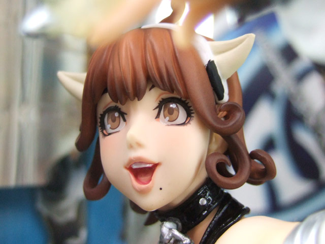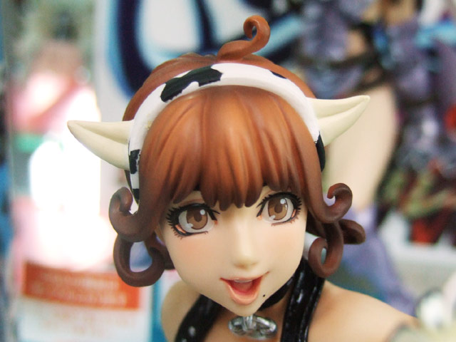 これは、以前ワンフェス2007夏でサンプル展示もあった、コトブキヤラジオ会館でのサンプルをお伝えし、その後とらのあな本店で乳だし展示もあった、ガーンジー花子さん(RA)の元となった、白肌の花子さんを、デザインされた司淳氏自らによる完全描き下ろしイラストを元に立体化したもので、メガハウスの商品説明によると『人気イラストレーター・司淳氏の描くセクシーダイナマイツな牛娘「ホルスタイン花子さん」が、エクセレントモデルCOREシリーズに登場。彼女のいろいろな意味ではちきれんばかりの魅力を、メガハウス驚異の技術力で立体再現している。このホルスタイン花子さん、これまでにもガレージキットなどとして立体化されているが、今回発売される花子さんのデザインは司氏自らによる完全描き下ろし。司氏と花子さんのファンなら、絶対見逃せない商品となっている。』と紹介されています。