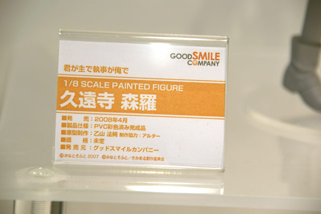 11月24、25日に開催された電撃15年祭グッドスマイルカンパニーブースでは、グッドスマイルカンパニー「君が主で執事が俺で 久遠寺森羅」の無彩色サンプルが展示されていました。これは、みなとそふとの第1弾となるエロゲ「君が主で執事が俺で」(AA)のキャラ「久遠寺森羅」を立体化したものです。未彩色ながらその雰囲気は、まさに白猫参謀氏のイラストそのもの!