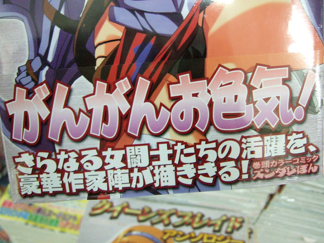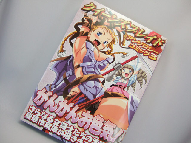 11月24日、「クイーンズブレイドアンソロジーコミック Vol.3」(AA)が発売されました。これは、全身白濁液まみれがあったVol.1、「暴れるとアンタの大事なところに入っちゃう」なVol.2に続く、クイーンズブレイドのアンソロジーコミックの第3弾。今回オビには「がんがんお色気!」とかかれ、ズンダレぽん氏のはいてないノアのほか、アソコをくりくりするシーンもありましたw