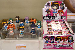 11月20日、某所にて開催された、宮沢模型新作展示会2007秋の、お伝えした以外のブースの様子を3回に分けてお伝えします。こちらでは、アイズプロジェクト、アオシマ、アトリエ彩、ウェーブ、オーガニック、オーキッドシード、キャラアニ、グッドスマイルカンパニー、クルシマ、クレイズ、コトブキヤ、コナミの12ブースの様子を。画像はクルシマの「レイ・アスカ2007夏」。