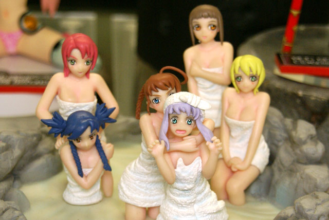 11月20日、某所にて開催された、宮沢模型新作展示会2007秋の、お伝えした以外のブースの様子を3回に分けてお伝えします。こちらでは、バンダイ、ボークス&ビート、みやびや、ムービック、メディコムトイ、やまと、ユージン、らしんばん、リリックスの9ブースの様子をお伝えします。画像はリリックスの「舞-乙HiME オトメたちのお風呂フィギュア」(AM)。