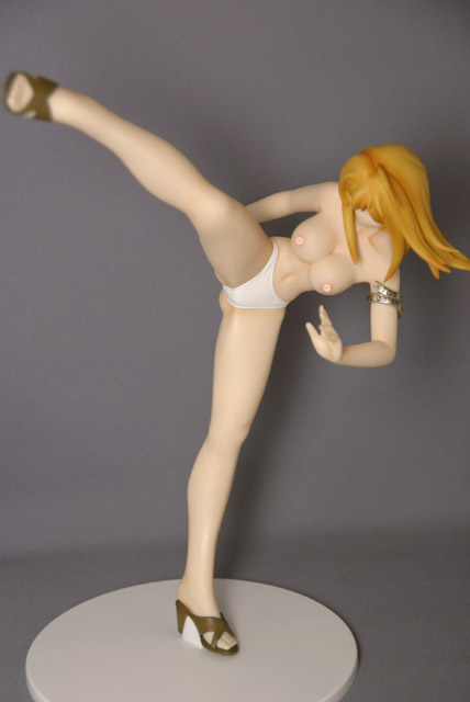 これは、以前PVCサンプルレビューもお伝えした、やまとが2004年、2005年、2006年と毎年立体化している「一騎当千」の孫策伯符の2007年度版となるもので、年度版初の制服以外のコス、キャストオフ可能な仕様の、パンツ全開のハイキックポーズで立体化したもので、やまとの商品説明によると『アニメ第2弾も大好評だった”塩崎雄二”原作の人気タイトル「一騎当千」より主人公の孫策を躍動感溢れる蹴りポーズで立体化!原型製作は、かわいいキャラには特に定評のある”Zenko”氏(硫黄泉)。キャストオフのギミック付き。』と紹介されています。
