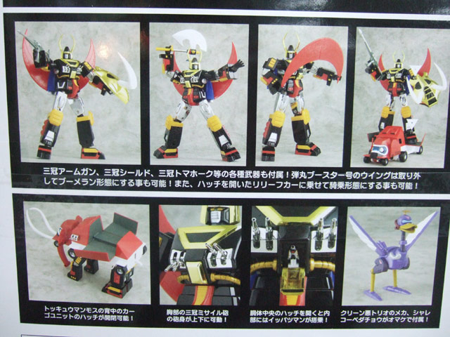 9月に発売以来大好評の「BRAVE合金10逆転王」に続き、イッパツマンより「BRAVE合金11三冠王」が登場です!!劇中のギミックを可能な限り再現し(胴体中央のハッチの中にはイッパツマンが搭乗!ハッチを開いたリリーフカーに乗せて騎乗形態も!弾丸ブースター号のウィングを取り外してブーメラン形態へ!など)ダイキャストもふんだんに使用した三冠王が登場!!「トッキュウマンモス」と「弾丸ブースター号」が合体・変形して巨大メカ「三冠王」と「リリーフカー』になります。逆転王に続き、武器とオマケも豊富に付属!発売中の逆転王とのシークレットギミックもありますので、お見逃しなく!