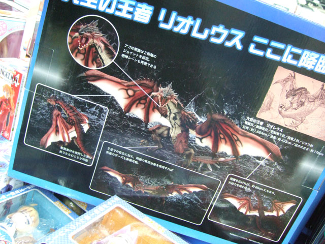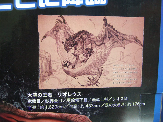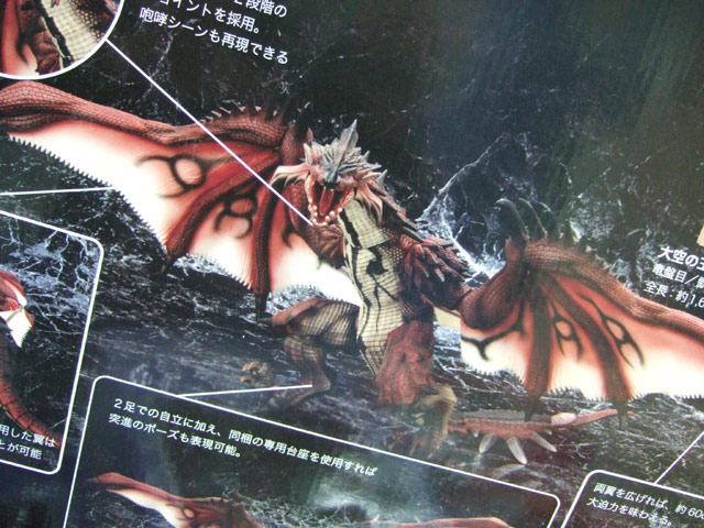 シリーズ累計200万本を越えるカプコンのヒット作「モンスターハンター」シリーズ。その象徴とも言える飛竜リオレウスがなんとビックサイズのフルアクションフィギュアとして登場!!モンスターハンターの世界では「天空の覇者」と呼ばれ、その強さ、カッコ良さは文句ナシ!全長約40cm、翼幅約60cmのビックサイズながらリオレウスの首や尾は内部にボールジョイントを多用することで広範囲の可動を確保。もちろん翼も翼膜部分に軟質素材を使用し可動させることが可能です。天空の覇者をその手に・・・。