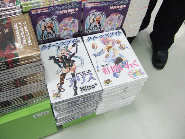クイーンズゲイトの第1弾「門を開く者 アリス」(AA)と「魔法少女 虹原いんく」(AA)は、公式な発売日は11月30日ですが、28日にはアキバで発売してました。「門を開く者 アリス」(AA)は、臀部を描くのが大好きな?Niθ(にしー)氏がイラストを担当されているためか、イラスト32枚中12枚がケツ見せイラストで、その中のひとつはお漏らし?っぽいものも。ちなみに大開脚ポーズもw