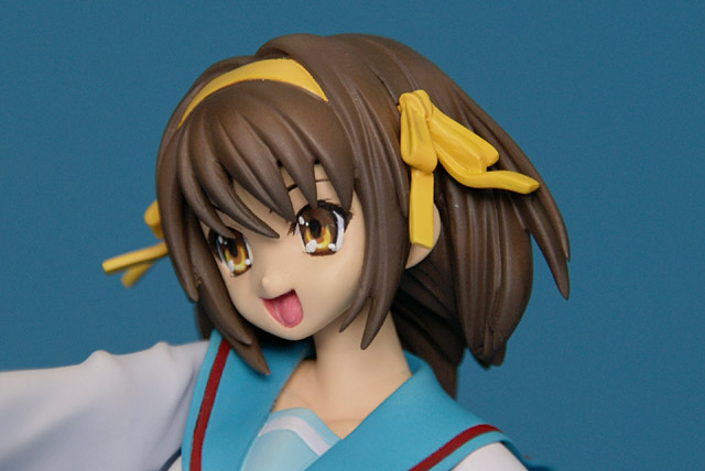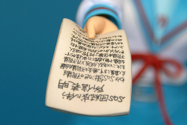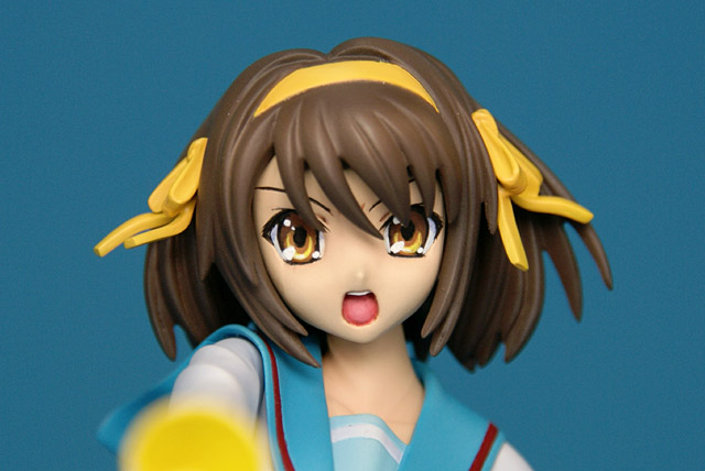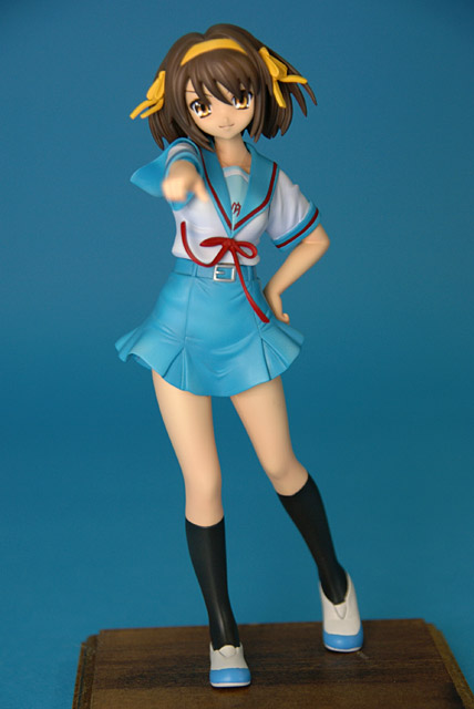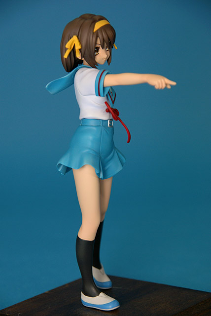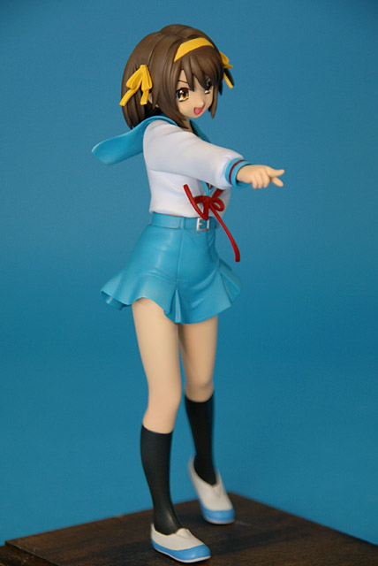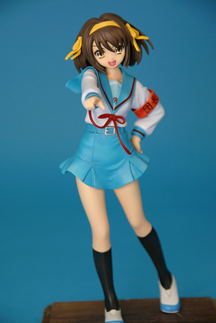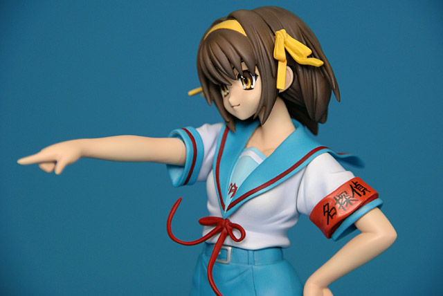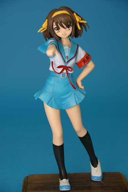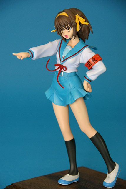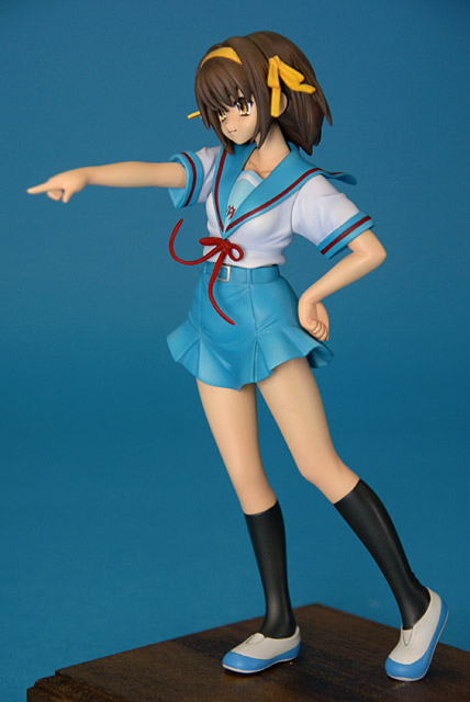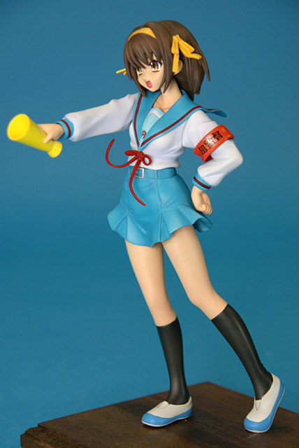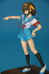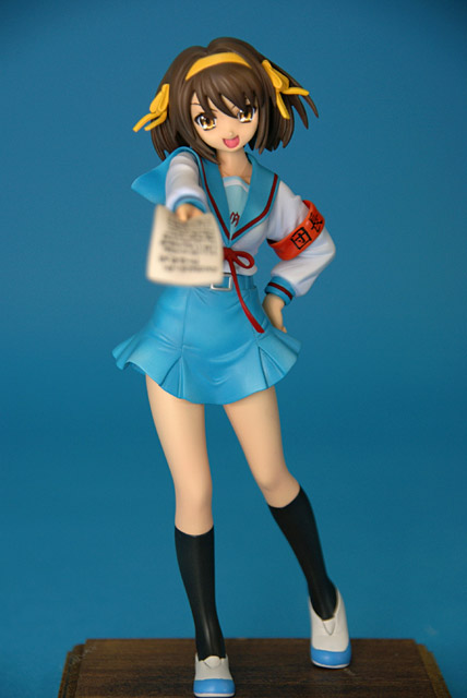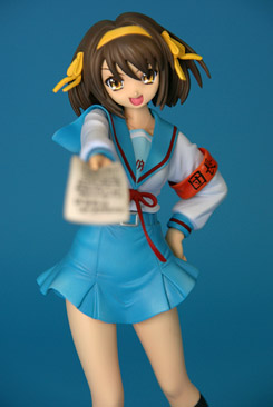 これは「涼宮ハルヒの憂鬱」のハルヒを、SOS団所信表明を配布している制服姿で立体化したもので、ウェーブの商品説明によると『トレジャーフィギュアコレクション「涼宮ハルヒの憂鬱」シリーズにいよいよ、満を持して「涼宮ハルヒ」が登場。まずは、ハルヒのキャラクター性をもっとも象徴しているとも言える指差しポーズの再現をウェーブならではの解釈で再現。その上で思わずファンがニヤリとしてしまうポーズやアイテムをふんだんに盛り込み、また組替部も分割が目立たないよう考慮し、それぞれ組替で自由に楽しめる内容と致しました。』と紹介されています。