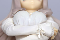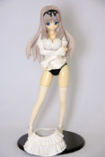 これは、以前サンプル展示もお伝えした、「ToHeart2」のキャラ「久寿川ささら」をゴスロリ風の私服姿で立体化した「通常版」(AM)を、白を貴重としたカラーにし、12月2日に開催予定の「アクアプラスフェスタ2007」会場限定で販売されるもので、レジーニャ!の商品説明によると「ToHeart2久寿川ささらフィギュアにイベントでしか買えない一部カラー違いの限定版が発売決定!白ドレス、白ニーソ、そして黒い下着のささりゃんだ!2007年12月2日開催のアクアプラスフェスタ2007にて、500体の限定販売いたします。白く清楚なささら会長を是非、イベント会場でゲットして下さいね!!」と紹介されています。