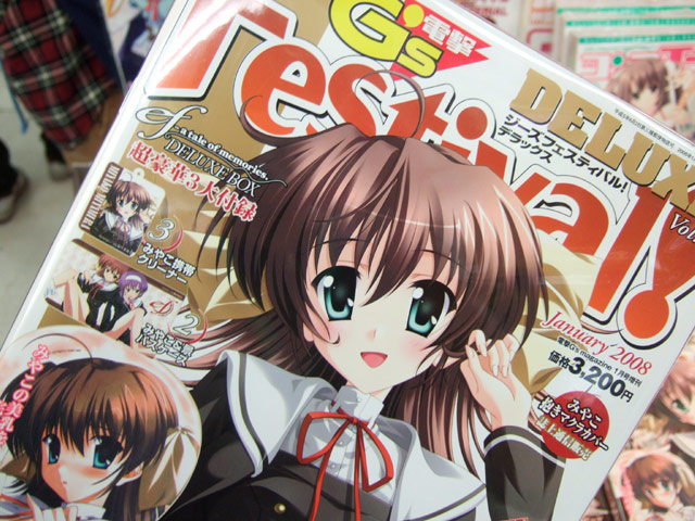 11月30日、「電撃G’s Festival DX Vol.1」(AA)が発売されました。これは、史上初のおっぱいマウスパッドが付録の、アニメ「ef – a tale of memories.」を中心とした「efシリーズ」特集本。とら1号店では、「とある男のGフェスDX的な生活」を掲示され、昼は「会社内、みやこ立体マウスパッドで“モミモミ”しながらデスクワーク。」だそうでw 他、30日発売の雑誌をまとめて。