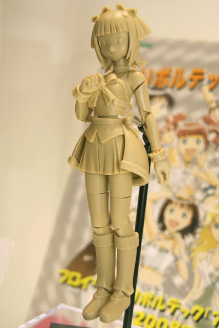 12月1日に開催された、リボルテックエキスポ07では、リボルテック アイドルマスター「天海春香」と「双海亜美」の無彩色サンプルが展示されていました。これは、ゲーム版「THE IDOLM@STER」のキャラ「天海春香」と「双海亜美」を、リボルテックフロイラインとして立体化したもの。リボルテックフロイラインは全て榎木ともひで氏原型なので、多分これも榎木ともひで氏原型のはず。
