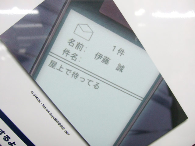 関連:School Days – 公式/School Days (ゲーム) – Wikipedia/「スクールデイズ -TVアニメ- 公式ガイドブック」 「発売当日は、誠くんにも来てもらう予定ですよ。(意味深)」