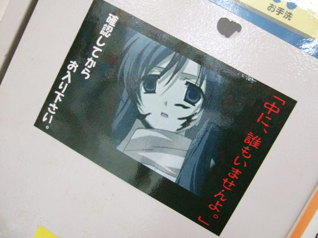 ・ゲームシティ5Fトイレに言葉様POP 「中に、誰もいませんよ。」