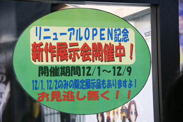 コトブキヤラジオ会館が2006年に、リニューアルオープンしてから1周年となる2007年12月1日から、2Fショウケース内にて、リニューアル1周年を記念し、フィギュアの「新作展示会」が開催されてます。展示されていたのはグッスマやクレイズ、ハピネットロビン等の新作フィギュア。それら新作フィギュアの展示の様子をお伝えします。画像はハピネットの「SMC ああっ女神さまっ」