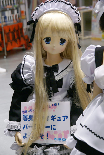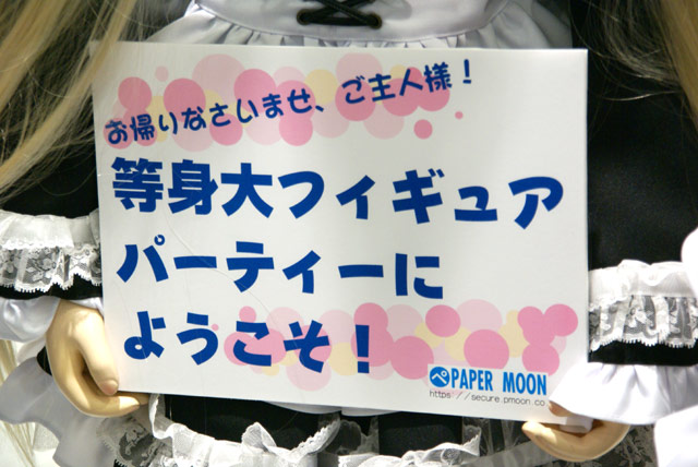 手に持っているPOPには「お帰りなさいませ、ご主人様!等身大フィギュアパーティにようこそ!」とかかれていました。