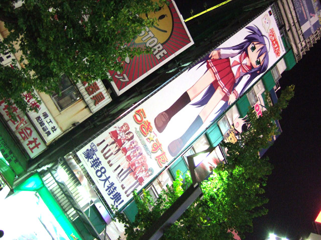 メディアランドの壁の看板が、PS2「らき☆すた 〜陵桜学園 桜藤祭〜 DXパック」(AA)に変更されていて、超巨大こなたになっていましたw