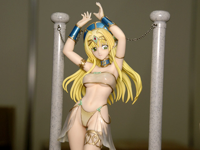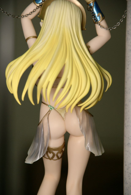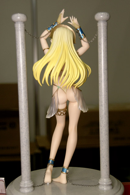 これは、以前キャストサンプルをお伝えしたことのある、エウシュリーのエロSLG「冥色の隷姫〜緩やかに廃滅する青珊瑚の森〜」(AA)のキャラシルフィエッタ・ルアシアをパッケージイラストのコスで立体化したもので、アトリエ彩の商品説明によると『エウシュリーが送る大人気PCゲーム「冥色の隷姫〜緩やかに廃滅する青珊瑚の森〜」のメインヒロイン「シルフィエッタ」を、囚われて拘束されたシュチュエーションにて立体化しました!屈辱に耐える気高い姫の表情がとてもせつなく、美しい仕上がりとなっております。鎖、専用の支柱、ベースが付属。拘束されているシチュエーションを忠実に再現。胸と腰の布はクリアー仕様で、よりセクシーで色っぽい雰囲気です。なんと胸の布は取り外し可能!布無しバージョンも楽しむことができちゃいます★』と紹介されています。