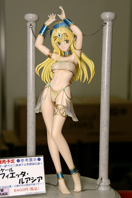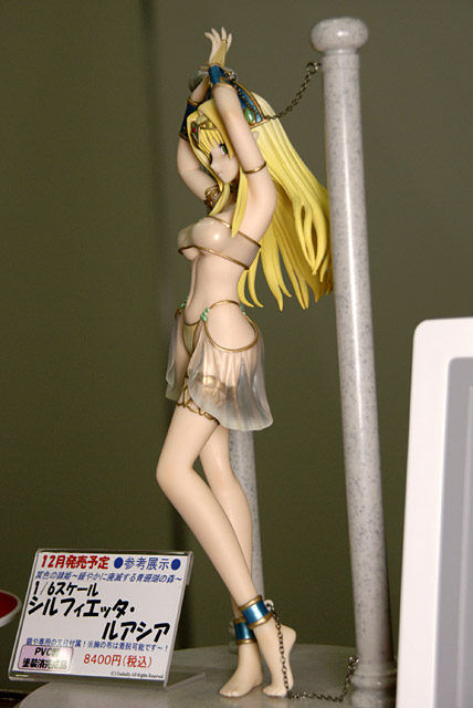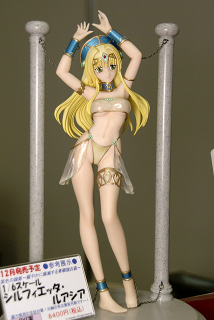 11月24、25日に開催された電撃15年祭のアトリエ彩 ブースでは、「冥色の隷姫 シルフィエッタ・ルアシア」(AA)のPVCサンプルが展示されていました。これは、以前キャストサンプルをお伝えしたことのある、エウシュリーのエロSLG「冥色の隷姫〜緩やかに廃滅する青珊瑚の森〜」(AA)のキャラシルフィエッタ・ルアシアをパッケージイラストのコスで立体化したものです。