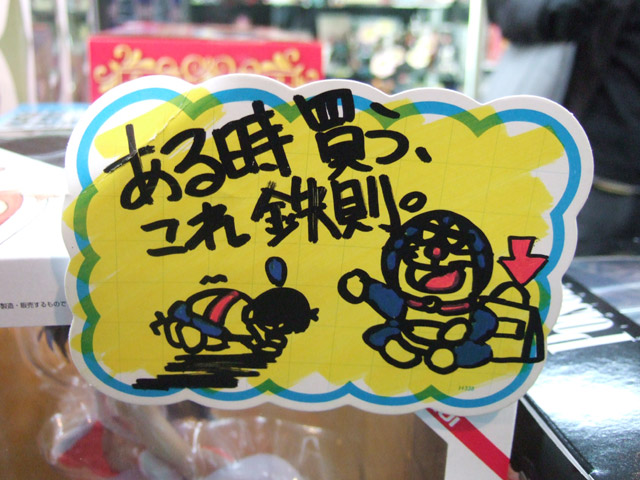 2007年8月に初版が発売されたときは、アキバで見かけたのは1店舗だったのですが、今回は再販ということもあり、ソフマップアミューズメント館のほか、コトブキヤラジオ会館、「ある時買う、これ鉄則。」というドラ○もんPOPのあったコトブキヤ秋葉原店、「すべてが大きいフィギュアです。」というヘたれPOPのあったとらのあな本店等、複数の店舗で見かけることが出来ました。