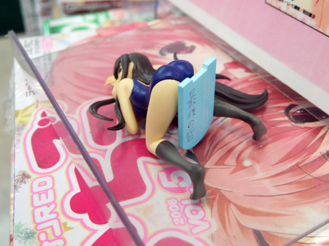 12月5日、「チャンピオン RED (レッド) いちご Vol.5」(AA)が発売されました。今回はVol.4で告知のあった、四つんばいで腰を突き出し、こすると白スクな「糸杉氏版 キミキス 二見瑛理子フィギュア」が付属していて、ゲーマーズ本店ではサンプルが展示されていました。ただし、そのサンプルでは、後ろに「最後の砦」が設置され、突き出されたお尻は見えないようになってましたw