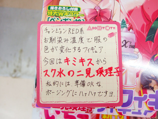 ゲーマーズのPOPによると「付録でついてくる二見さんのフィギュアはコトブキヤ製!!さあ熱をくわえてみよう!!※例によってこすりすぎの摩耗による返品は承り致しません!」とのことでしたw