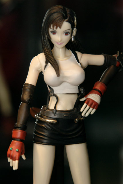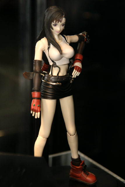 11月24、25日に開催された電撃15年祭のコトブキヤブースでは、スクウェア・エニックス ファイナルファンタジーVII (無印) プレイアーツ「 ティファ・ロックハート」(AM)「エアリス・ゲインズブール」(AM)、「クラウド・ストライフ」(AM)、「クラウド&ハーディー・デイトナ」(AM)の4種のサンプルが展示されてました。これは、FF710周年を記念して、シリーズ最初の姿を立体化したもの。
