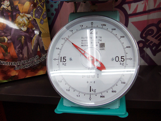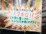 とらのあな1号店では、冊子版カタログをはかりに乗せた展示をしていて、それによると約1.7kgあるみたいで、「今年のカタログは1.7キロ!?こんなに重いのでレジにてお申し付け下さい」とのことでしたw