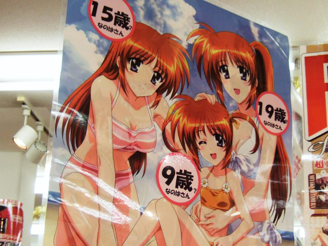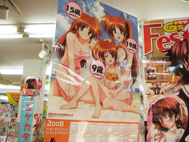 ゲーマーズ本店では、付録のひとつ『「魔法少女リリカルなのは」シリーズB2カレンダー2008』を「9歳?、15歳?、19歳なのはさん」とPOPをつけたサンプルを展示していました。
